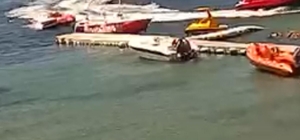 MUĞLA’nın Bodrum ilçesinde sürat teknesi tarafından çekilen, içerisinde 3 turistin bulunduğu deniz yatağı, iskeleye bağlı bulunan tekneye çarptı. Kazada 3 turist yaralanırken, olay anı ise güvenlik kamerasına yansıdı. Olay, saat 13.00 sıralarında Peksimet Mahallesi Gümüşlük Caddesi’ndeki sahilde meydana geldi. Polonya vatandaşı Kamil Arkadıusz B. (46), Kawa Dagmara M. (36) ve Kaim Jacek H. (47), sürat teknesi tarafından çekilen deniz yatağı ile tur attıkları sırada, yatak, parkur iskelesinde bulunan sürat teknesine çarptı. Çarpmanın şiddetiyle 3 turist de deniz yatağından fırlayarak tekneye çarparken, ihbar üzerine bölgeye sağlık ve Sahil Güvenlik ekipleri sevk edildi. Sağlık ekiplerince ilk müdahalesi yapılan yaralılar, çevre hastanelere kaldırıldı. Yaralılardan Kamil Arkadıusz B.’nin durumunun ağır olduğu öğrenildi. Öte yandan olay anı otelin güvenlik kamerasına yansırken, tekneyi kullanan su sporları kaptanı H.I. ise gözaltına alındı. Olayla ilgili inceleme sürdürülüyor. Anadolu Ajansı ve DHA tarafından geçilen tüm Muğla haberleri, bu bölümde Haberturk.com editörlerinin hiçbir editoryal müdahalesi olmadan otomatik olarak ajans kanallarından geldiği şekliyle yer almaktadır. Muğla Haberleri alanında yer alan haberlerin hepsinin hukuki muhatabı haberi geçen ajanslardır.